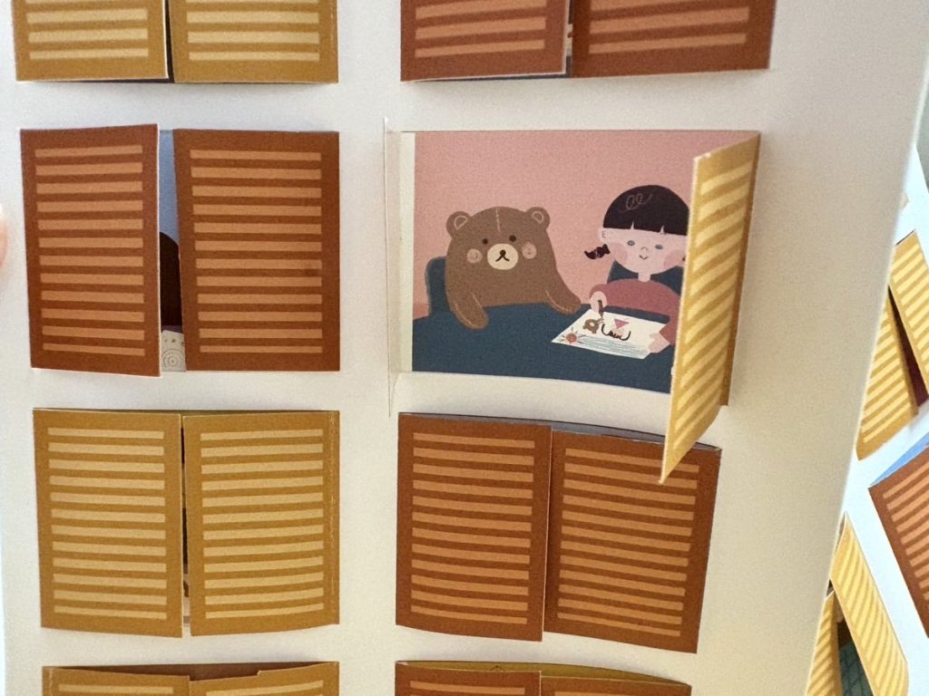 マンションの窓を開けると住人の様子が見れる絵本です。