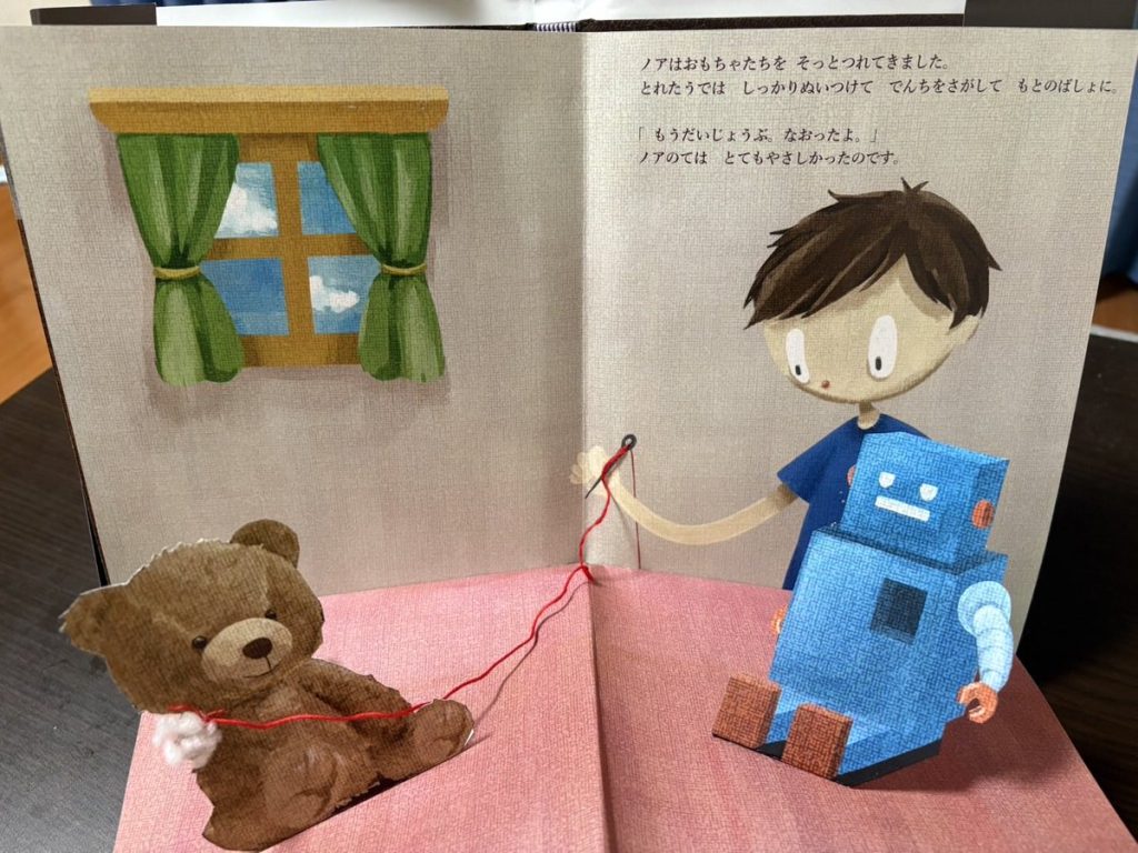 「おもちゃを大切にすること」をテーマにした飛び出す絵本。
