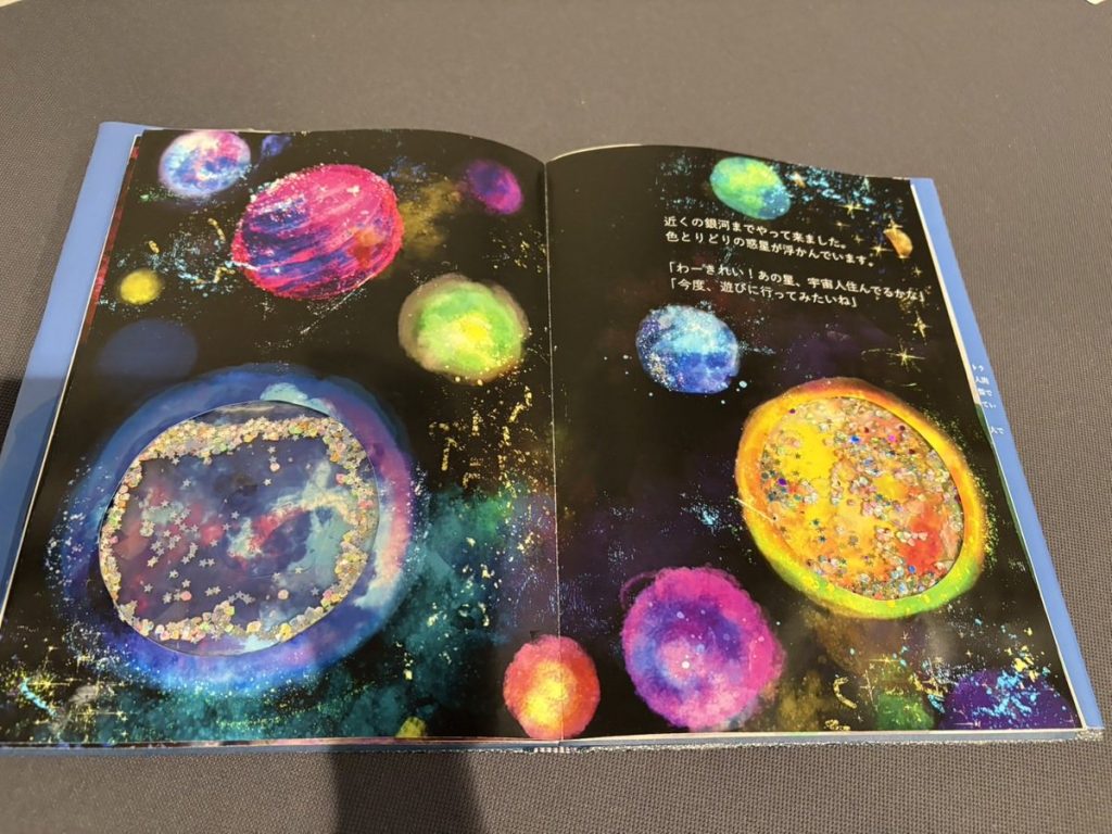 宇宙旅行をテーマにした水を使った仕掛け絵本。