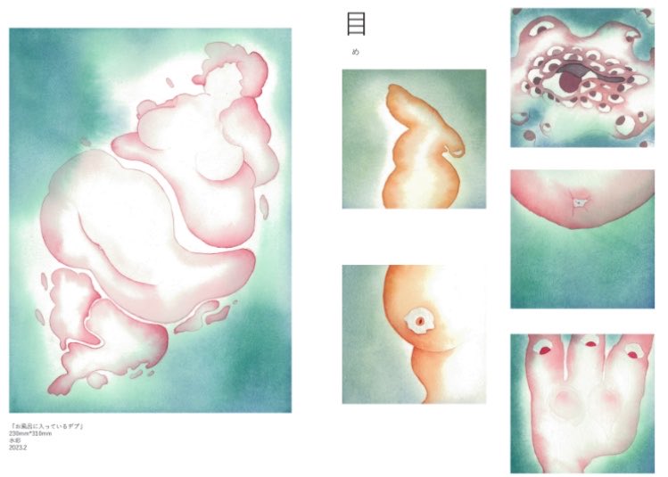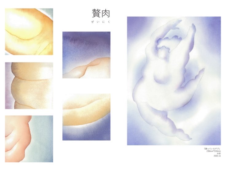 この作品は2つのパートがあり、1つは女性の身体と雲の結合によって、デブの身体的魅力を表現していま