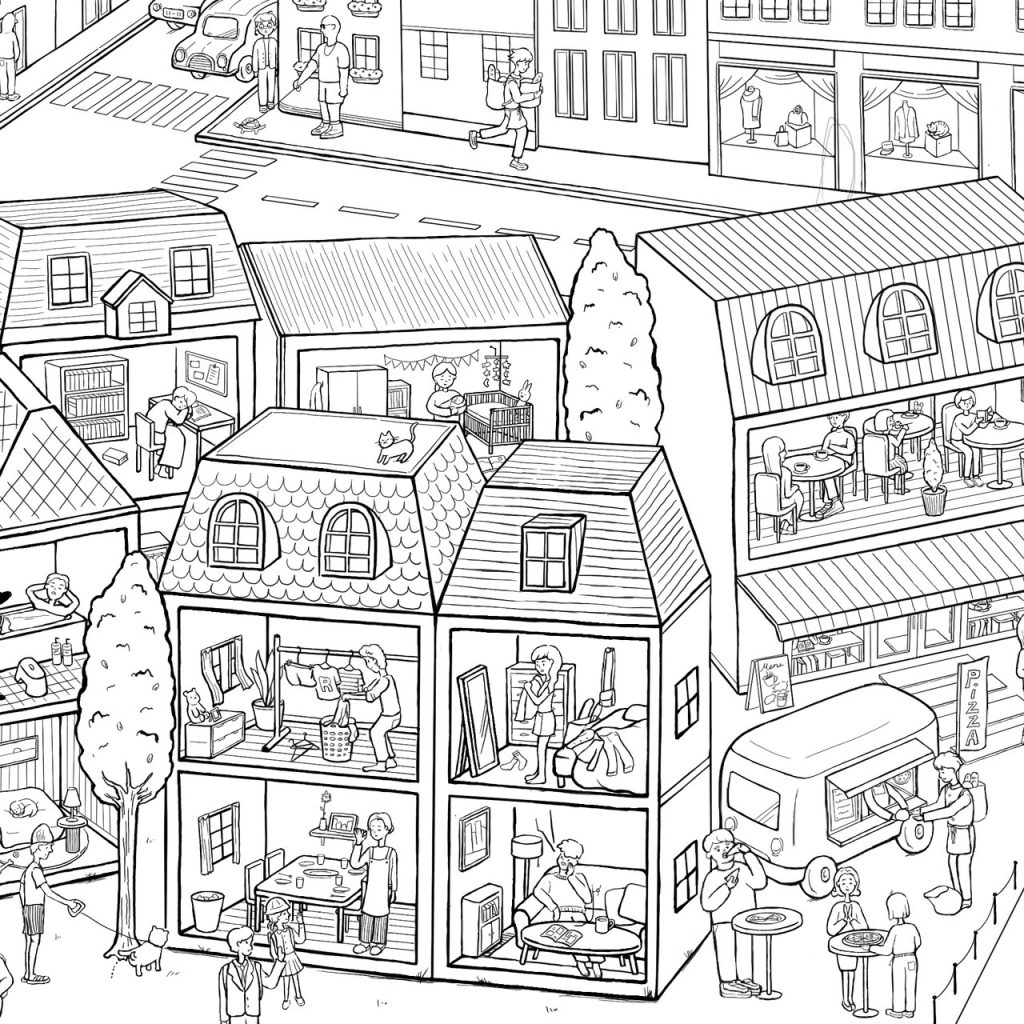 探し絵の絵本を制作中です!パン屋見習いの主人公が、街の人々にパンを配っていくお話が軸になっています。日常で起こるちょっとした不思議な出来事を織り交ぜながら、見応えのあるイラストを目指します。